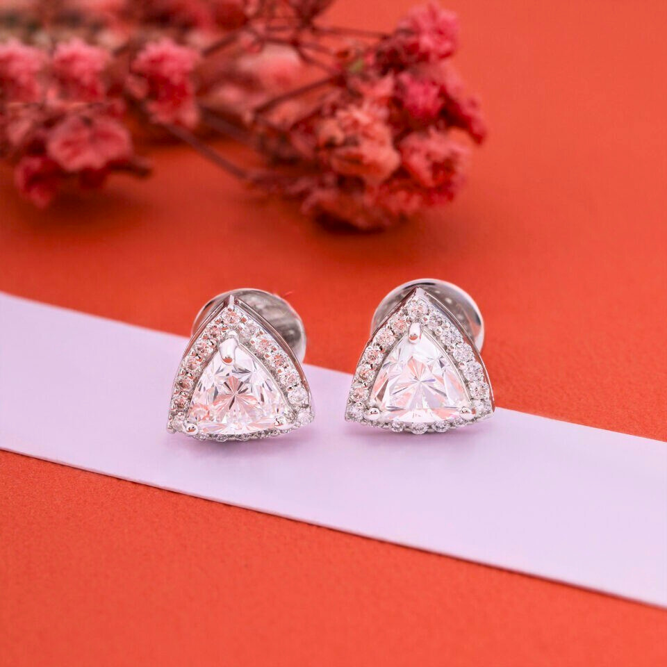 2.00 Ct Trillion Cut Lab Grown Diamond Halo Stud Earrings