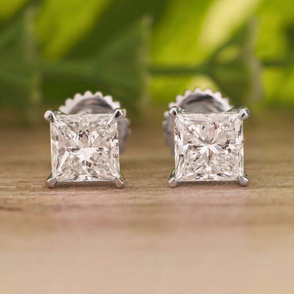 4.00 TCW Princess Cut Lab Grown Diamond Stud Earrings