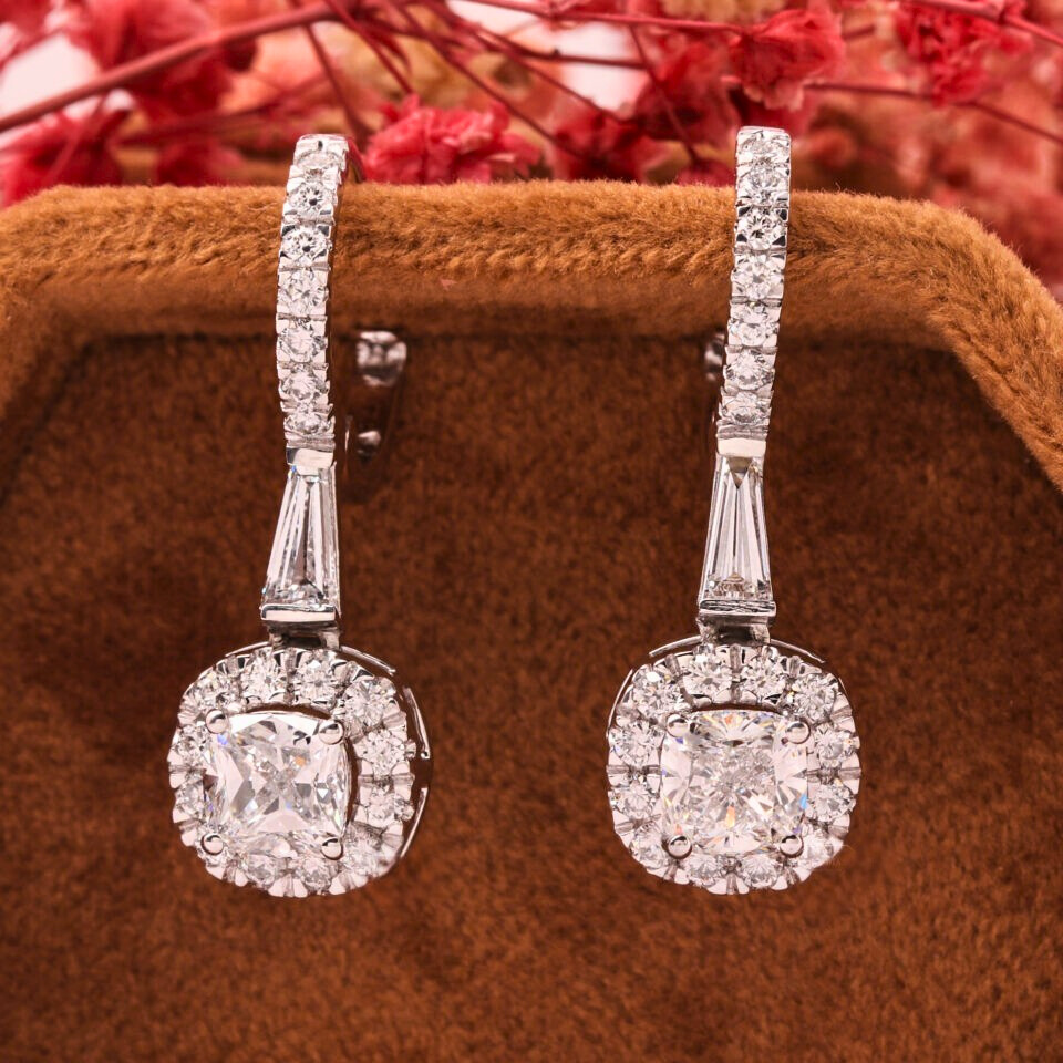 3.50 TWC Cushion Cut Lab Grown Diamond Drop Earrings