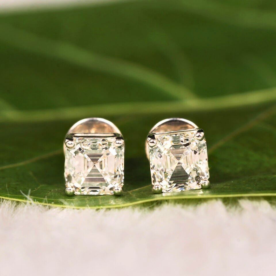 Asscher Cut Lab Grown Diamond Stud Earrings