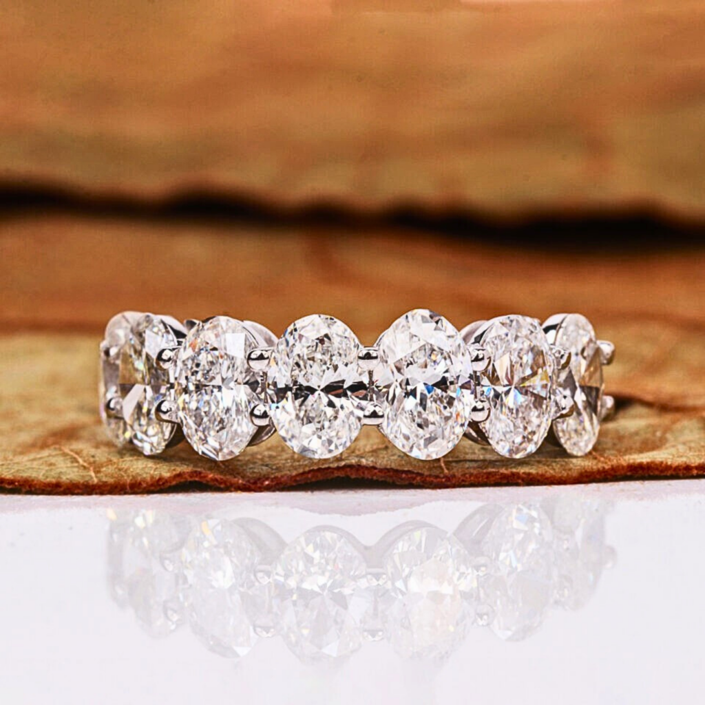 3.50 Ct Oval Cut Lab Grown Diamond Half Eternity Wedding Ring