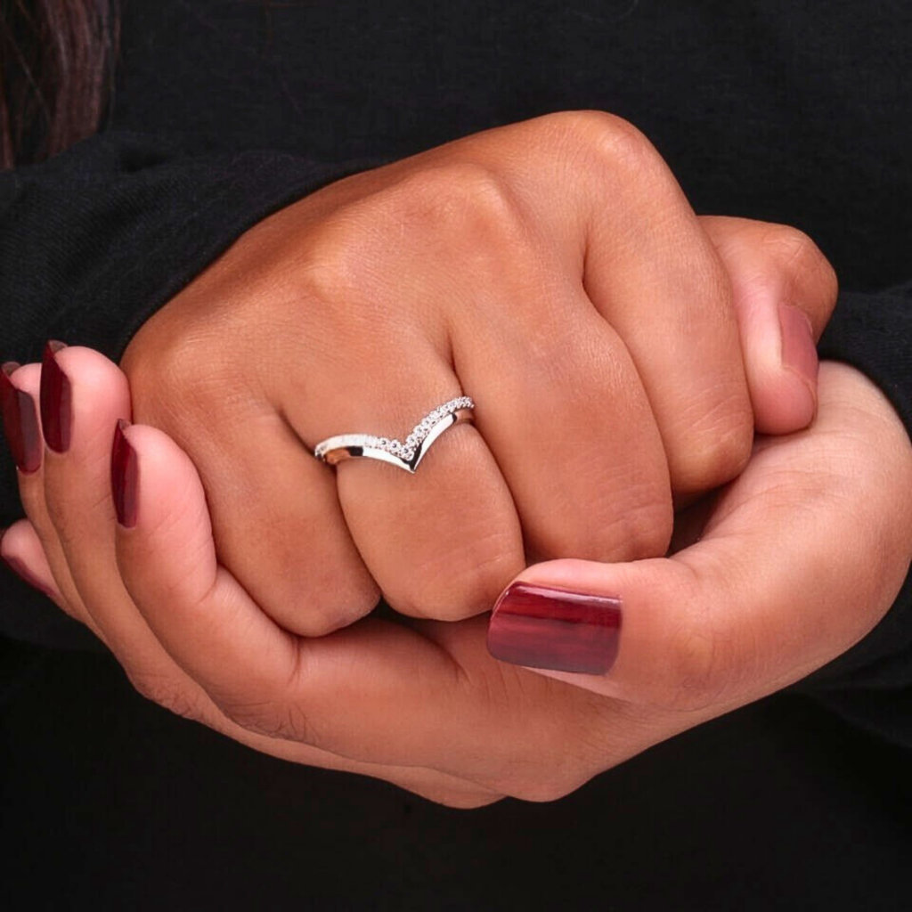 Round Shape Lab Grown Diamond Chevron Ring
