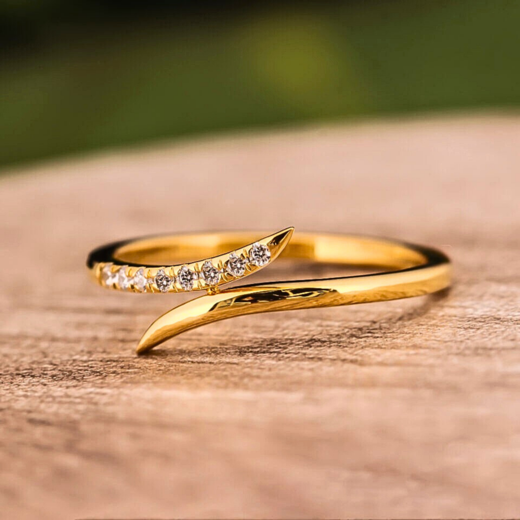 Round Cut Lab Grown Diamond Wave Curved Stackable Ring