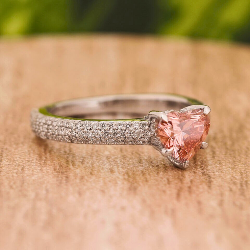 1.50 Ct Vivid Pink Heart Cut Lab Grown Diamond Engagement Ring with Pave Band