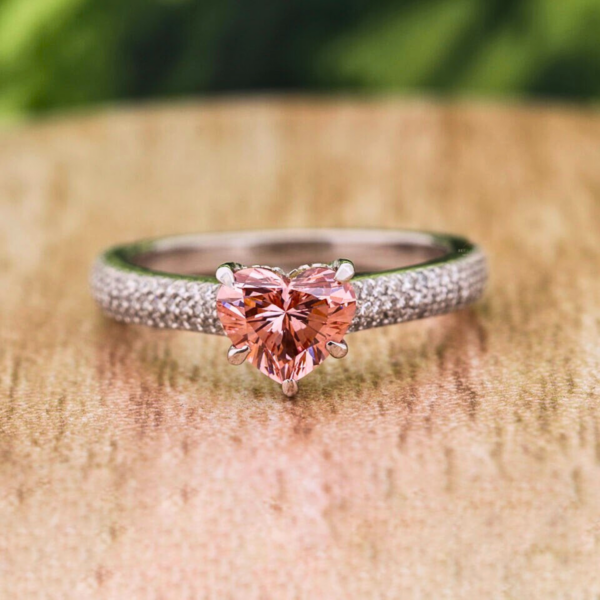 1.50 Ct Vivid Pink Heart Cut Lab Grown Diamond Engagement Ring with Pave Band
