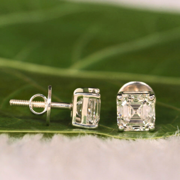 Asscher Cut Lab Grown Diamond Stud Earrings