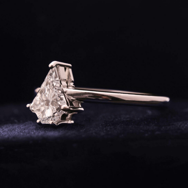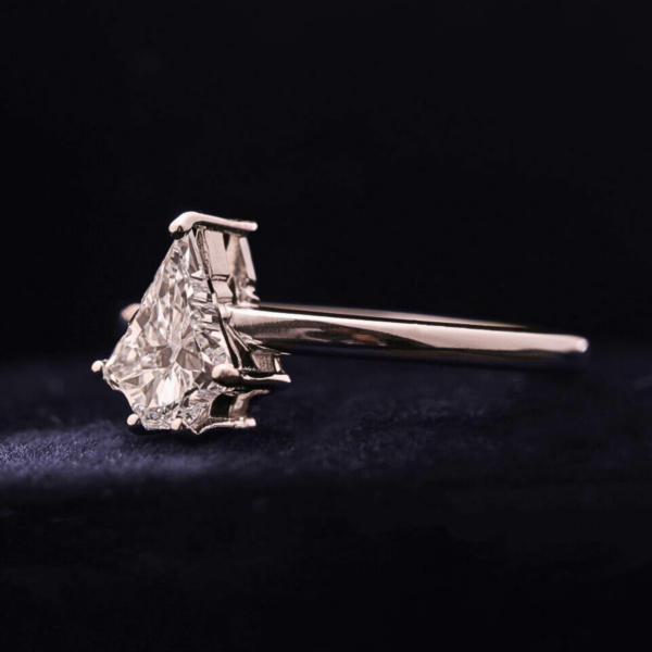 Manufactured with export-quality finishing and attention to detail, this ring offers superior durability, high polish and a comfortable fit. Its sleek minimalist band complements the bold center stone, allowing the diamond’s unique Christmas tree cut to remain the focal point while delivering a sophisticated and contemporary look.