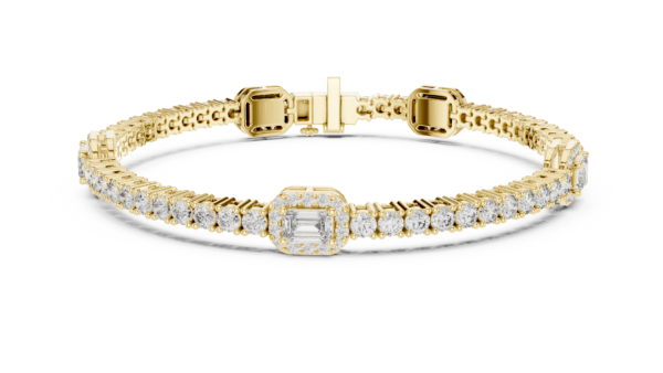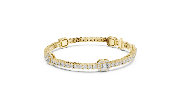 Experience refined luxury with this round and emerald shape lab grown diamond bracelet, crafted for those who appreciate timeless elegance and premium craftsmanship. Designed with a sophisticated combination of emerald-cut center diamonds and brilliant round diamonds, this bracelet delivers exceptional brilliance and a modern high-end look suitable for both men and women.